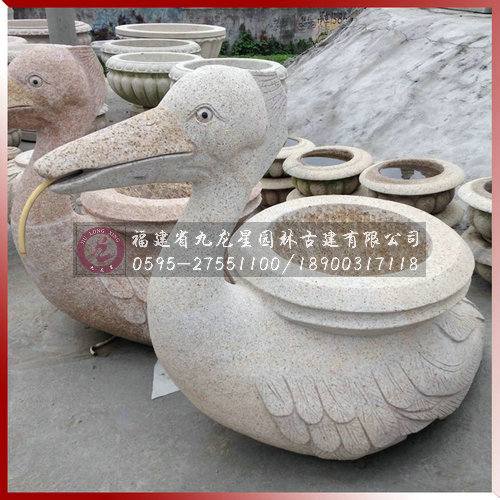 石雕噴水動物采用天然花崗巖,選取動物形象為范本雕刻而成,成品栩栩如生。因天然的花崗巖強度高、耐腐蝕、抗風化、美麗的色澤可以保存百年以上,不易損壞,保養方式簡單。因此動物噴水雕刻適合于室外擺放。
