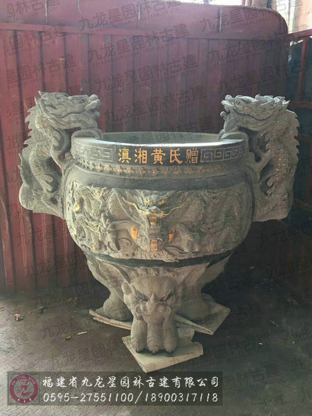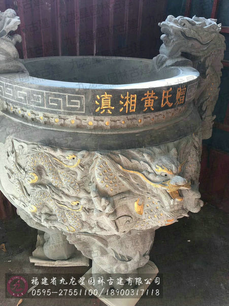 古厝祖祠用品 雕龍香爐三足石雕圓爐發(fā)貨