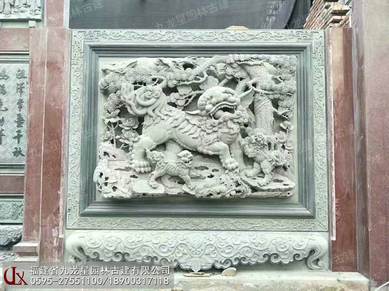 當前位置:九龍星 > 客戶案例 > 祠堂門面獅象浮雕圖 浮40公分