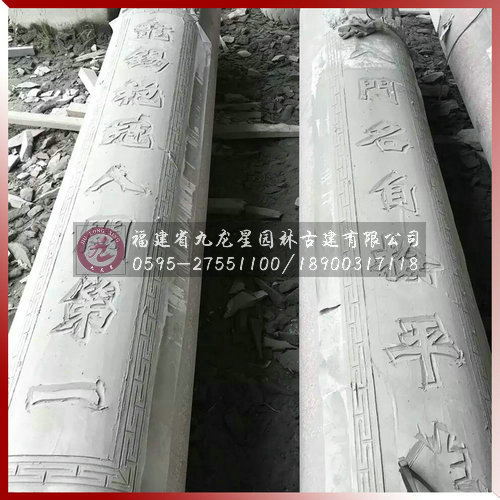 方形圓形石雕對(duì)聯(lián)柱寺院祠堂古建專(zhuān)用由福建省九龍星園林古建有限公司專(zhuān)業(yè)生產(chǎn)加工,我司常年供應(yīng)傳統(tǒng)手工寺廟雕刻精雕龍鳳柱、石雕龍柱、盤(pán)龍柱、華表龍柱、對(duì)聯(lián)柱、廣場(chǎng)文化柱等各種款式石雕柱子。
