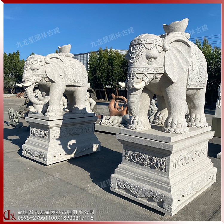 雕刻大象的石雕 馱元寶石雕大象圖片 造型華麗