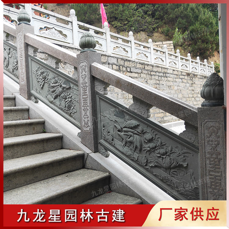 浮雕是園林古建筑石欄桿常見的一種工藝,浮雕工藝主要展示的是一種凸出的立體效果,是更具美感的一種雕刻手法。石欄桿浮雕圖案一般是采用手工雕刻,欄桿的圖案花紋內容涉及我們生活中的很多元素,并且還會加入類似一些傳統文化,古代神話等多方面的元素。